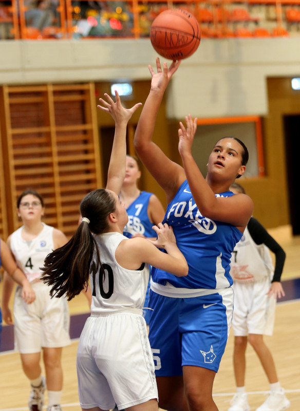Das 4. Viertel beginnt diesmal mit einem 5:0-Run der Foxes, die trotz des Rückstands und einiger (zum Glück kleiner) Blessuren von Pia, Zsoka und Marlen weiterfighten. Zunächst verwertet Sonia, die mit Fortdauer des Spiels auch offensiv besser in Fahrt kommt, einen Freiwurf – dann treffen Mathilda und Emma. Greta und Lucija setzen sich in der Zone gut durch, verfehlen aber knapp ihre ersten Körbe. In der Defense werfen sich die Foxes der körperlich sehr starken Nummer 31 der Dragonz entgegen – und auch wenn der Korb nicht immer verhindert werden kann, machen sie es ihrer Gegnerin nun schwerer als zu Beginn des Spiels. Der Kampfgeist der Foxes-Mädchen zahlt sich aus, das Schlussviertel wird mit +5 gewonnen. Dennoch gehen die BBC Nord Dragonz mit 67:35 als verdienter Sieger vom Feld.