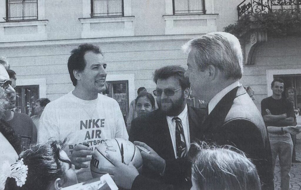 Sogar Bundeskanzler Franz Vranitzky und Bürgermeister Richard Hemmer beteiligten sich mit den „RED DEVILS“ (!), einem hiesigen Mädchenteam, in einem Rahmenwettbewerb an dem Turnier.
